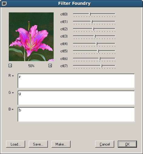 mit Filter-Factory in Photoshop eigene Filter programmieren kann. Gimp