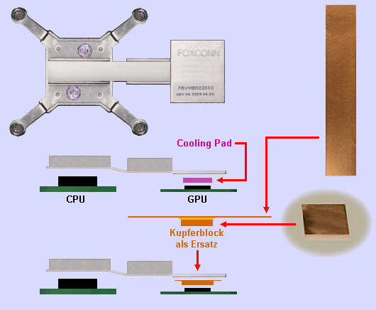 Das Cooling Pad muß ersetzt werden durch einen passenden