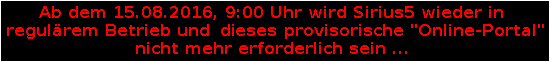 Unabhängig von aktuellen Online-Adressen bleibt der neue Sirius5 (437GB, Di.-Fr., 24h)