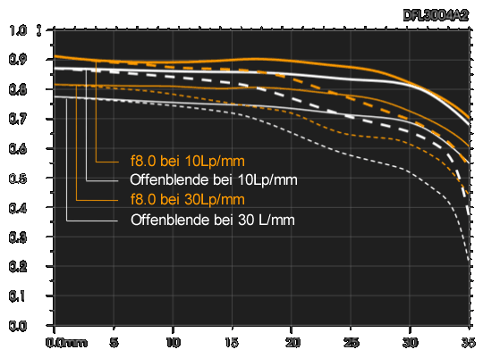 bei dieser MTF-Darstellung die Eigenschaft des Abblendens, die tendenziell zur höheren